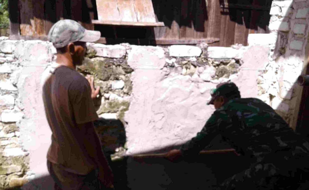 SUMENEP, (TransMadura.com) – Tingkatkan kerja sama dan solidaritas yang tinggi antara Babinsa bersama warga guna menciptakan Sinergitas TNI-Rakyat, Babinsa Koramil 0827/04 Bluto Koptu Afik Y melaksanakan karya bakti dalam membantu pelepokan pagar rumah Bapak Sodikin Dusun Tarogen Desa Lobuk Kecamatan Bluto Kabupaten Sumenep. Selasa (7-5-2019).