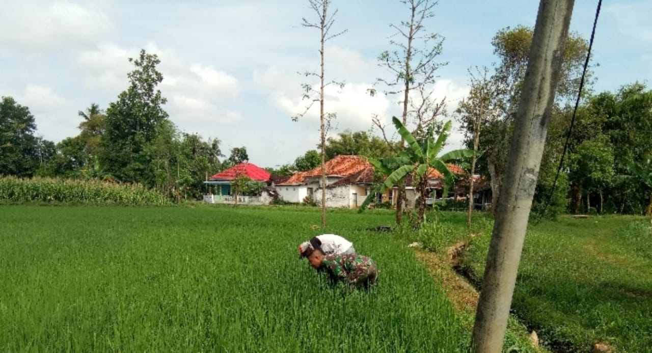 SUMENEP, (TransMadura.com) – Babinsa Koramil 0827/10 Ambunten Serda Hasan Basri melaksanakan pendampingan kepada petani mencabut rumput di sawah milik Bapak Samsuri Desa Tamba Agung Tengah Kecamatan Ambunten Kabupaten Sumenep. Minggu (12-5-2019).