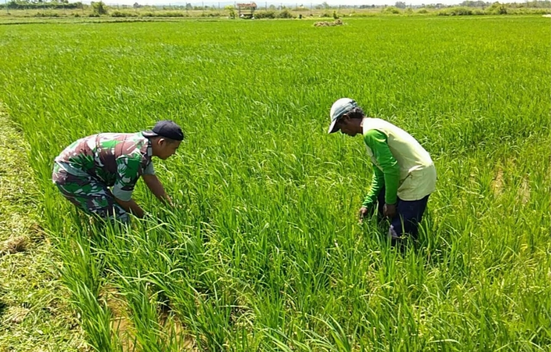 Dengan pendampingan dari Babinsa diharapkan dapat menjadi motivasi dan semangat agar para petani terus bersemangat dalam merawat tanamannya di sawah.