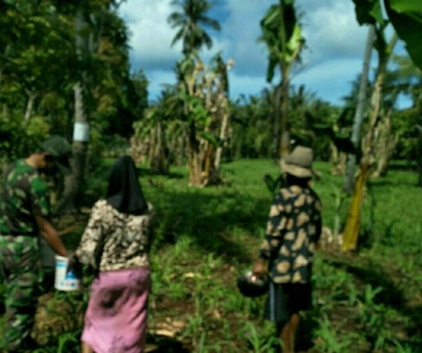 Babinsa Koramil 0827/22 Masalembu Bantu Petani Memupuk Tanaman Jagung