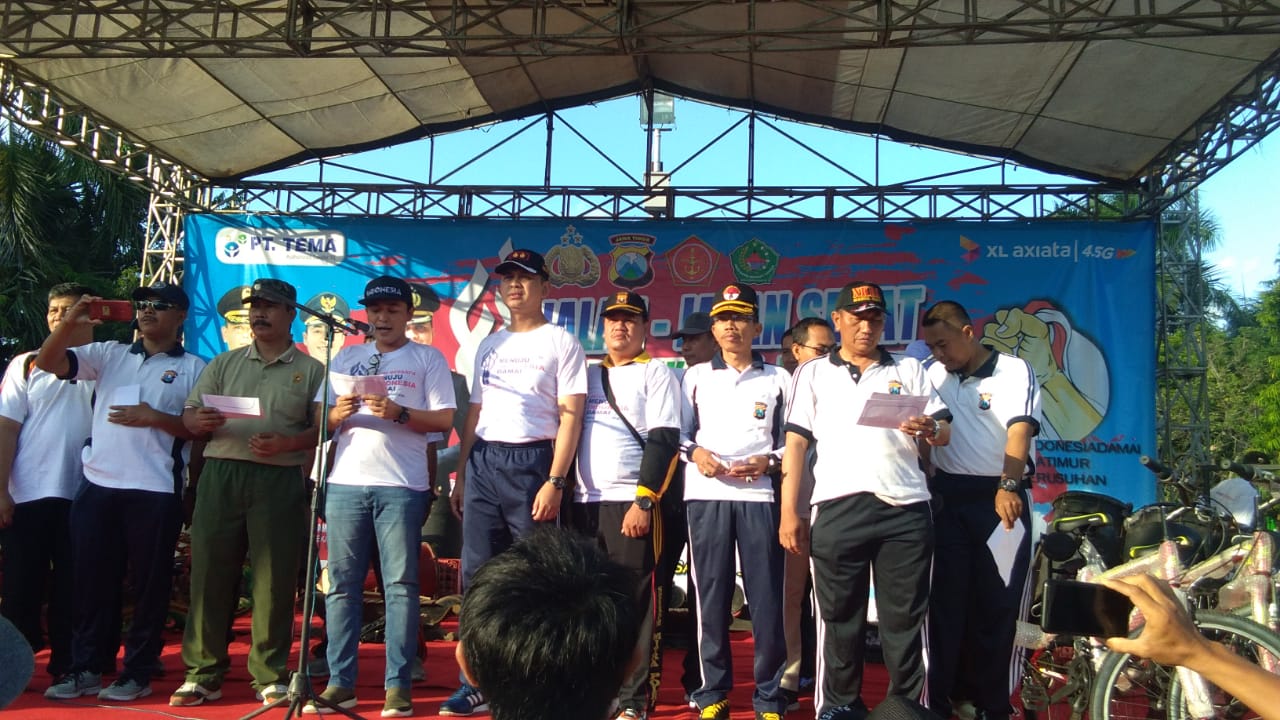 PAMEKASAN, (TransMadura.com) – Polres Pamekasan bersama jajaran Forum Koordinasi Pimpinan Daerah (Forkopimda) Pamekasan, Madura, Jawa Timur serta ribuan masyarakat setempat menggelar jala-jalan sehat. Kegiatan tersebut dilaksanakan di Taman Arek Lancor, Minggu (26/06/2019) pagi.