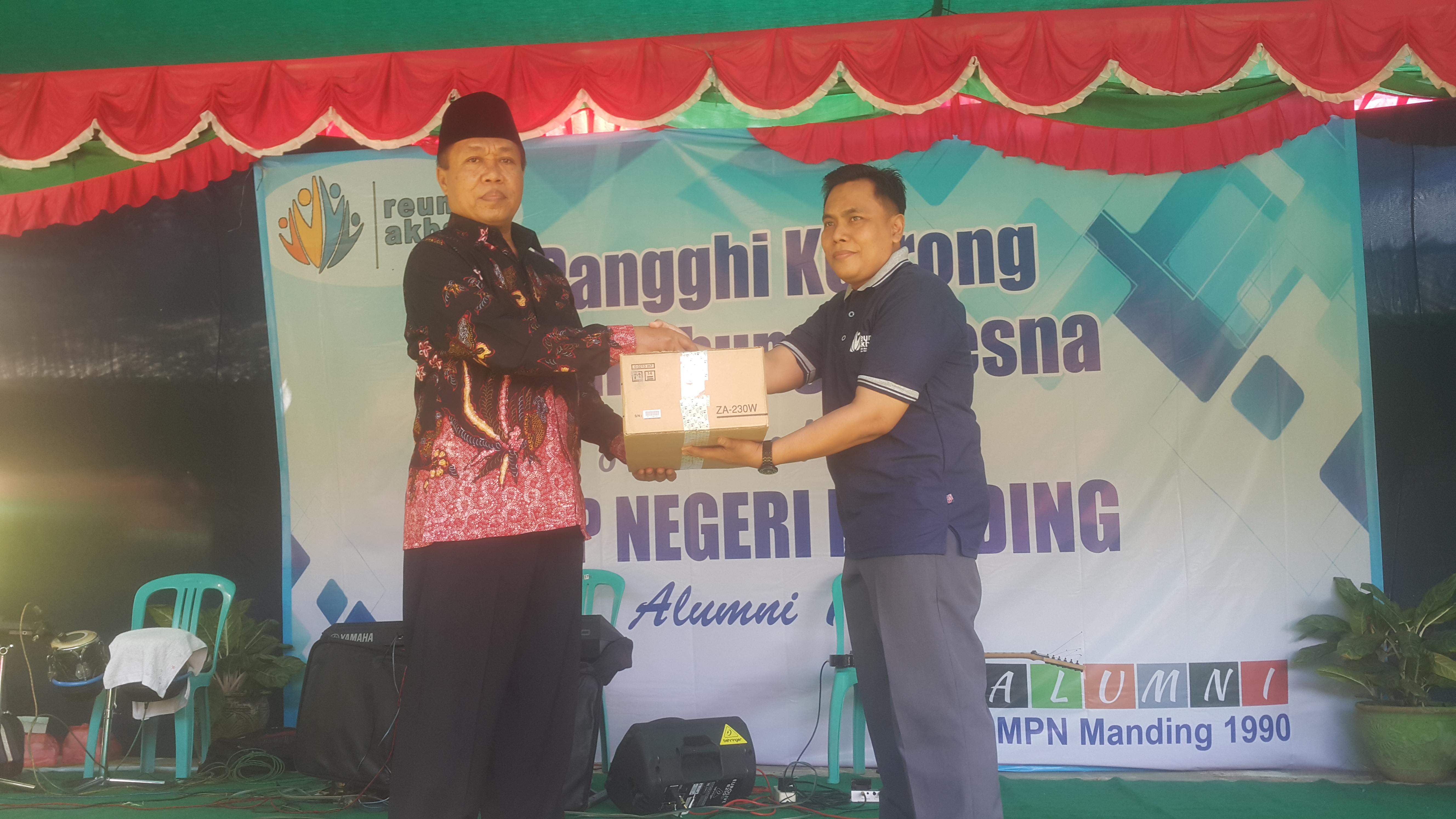 Bertajuk “Pangghi Kerrong Nyambhung Taresna Sataretanan” dalam rangka reuni 90 SMP Negeri 1 Manding, Sumenep, Madura, Jawa Timur, bertempat dihalaman Sekolah, Minggu, (16/6/2019.