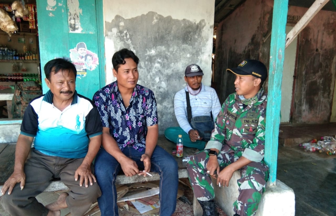 SUMENEP, (TransMadura.com) – Dalam menjalin komunikasi antara aparat Komando kewilayahan dengan masyarakat bisa dilakukan di mana saja. Seperti yang dilakukan Babinsa Koramil 0827/23 Giligenting Serda M Supriyadi dengan melakukan Komunikasi Sosial (Komsos) dengan warga di warung Bapak Ahmad Desa Jate Kecamatan Giligenting Kabupaten Sumenep. Senin (8-7-2019).