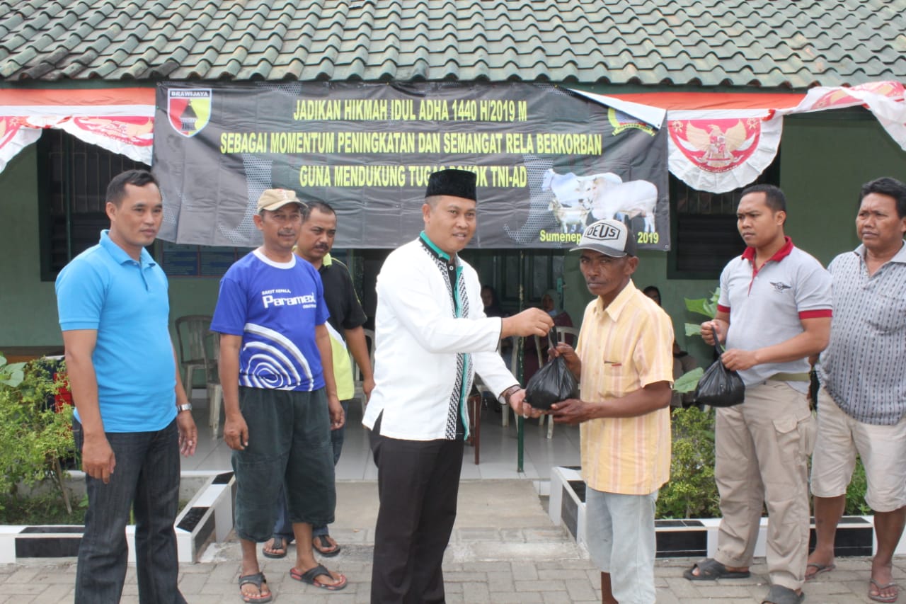 Penyerahan hewan qurban diberikan secara simbolis oleh Komandan Kodim  0827 Sumenep Letkol Inf Ato Sudiatna kepada pelaksana pemotongan hewan qurban di lapangan pafing Makodim.