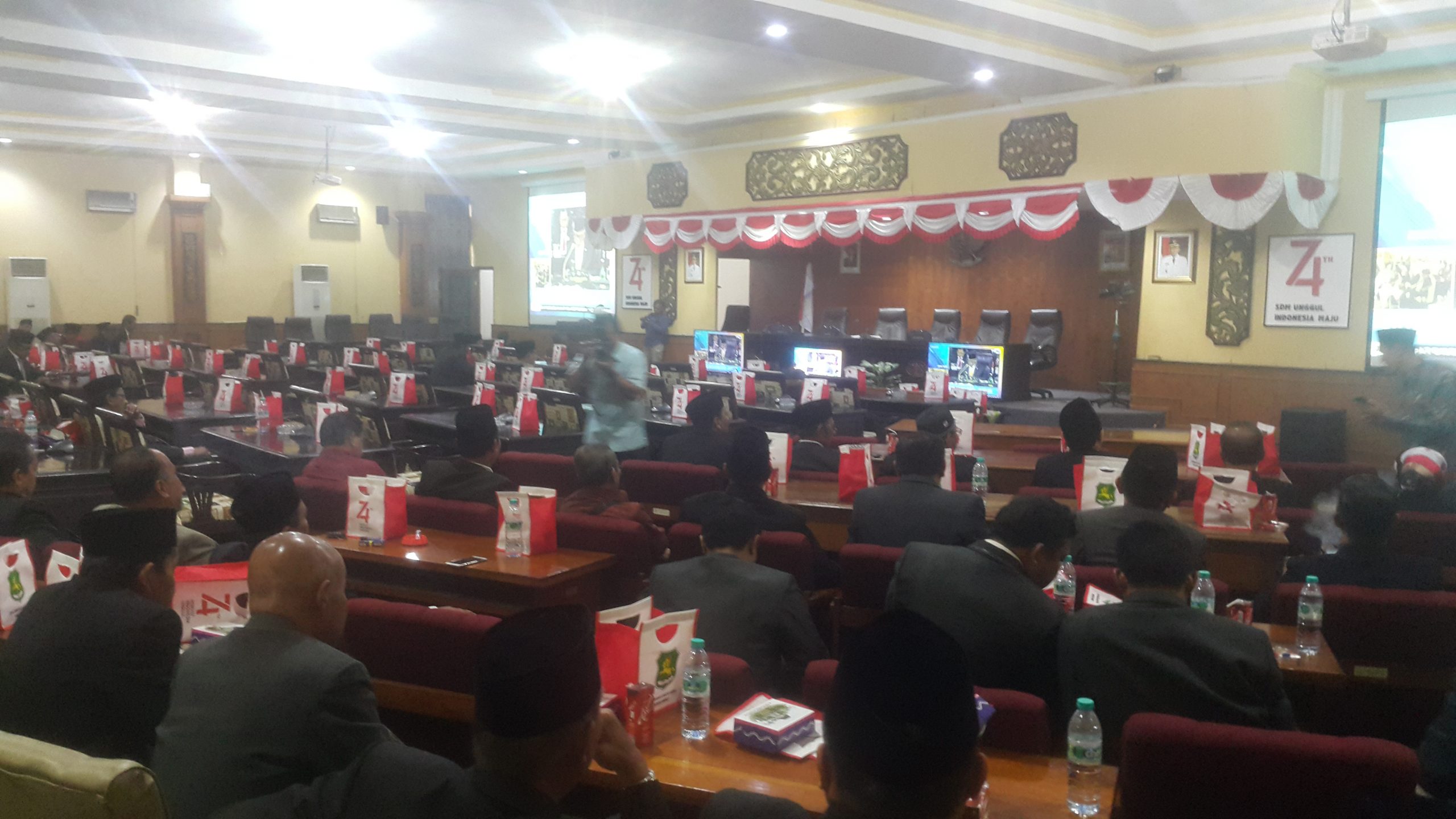 SUMENEP, (TransMadura.com) – Sidang Paripurna Istimewa dengan Agenda Mendengarkan Pidato Kenegaraan dalam rangka HUT RI ke 74 2019 digelar ruang sidang paripurna sekretariat DPRD Kabupaten Sumenep, Madura, Jawa Timur, hanya dihadiri 5 Anggota dewan, Selasa, (16/8/2019).