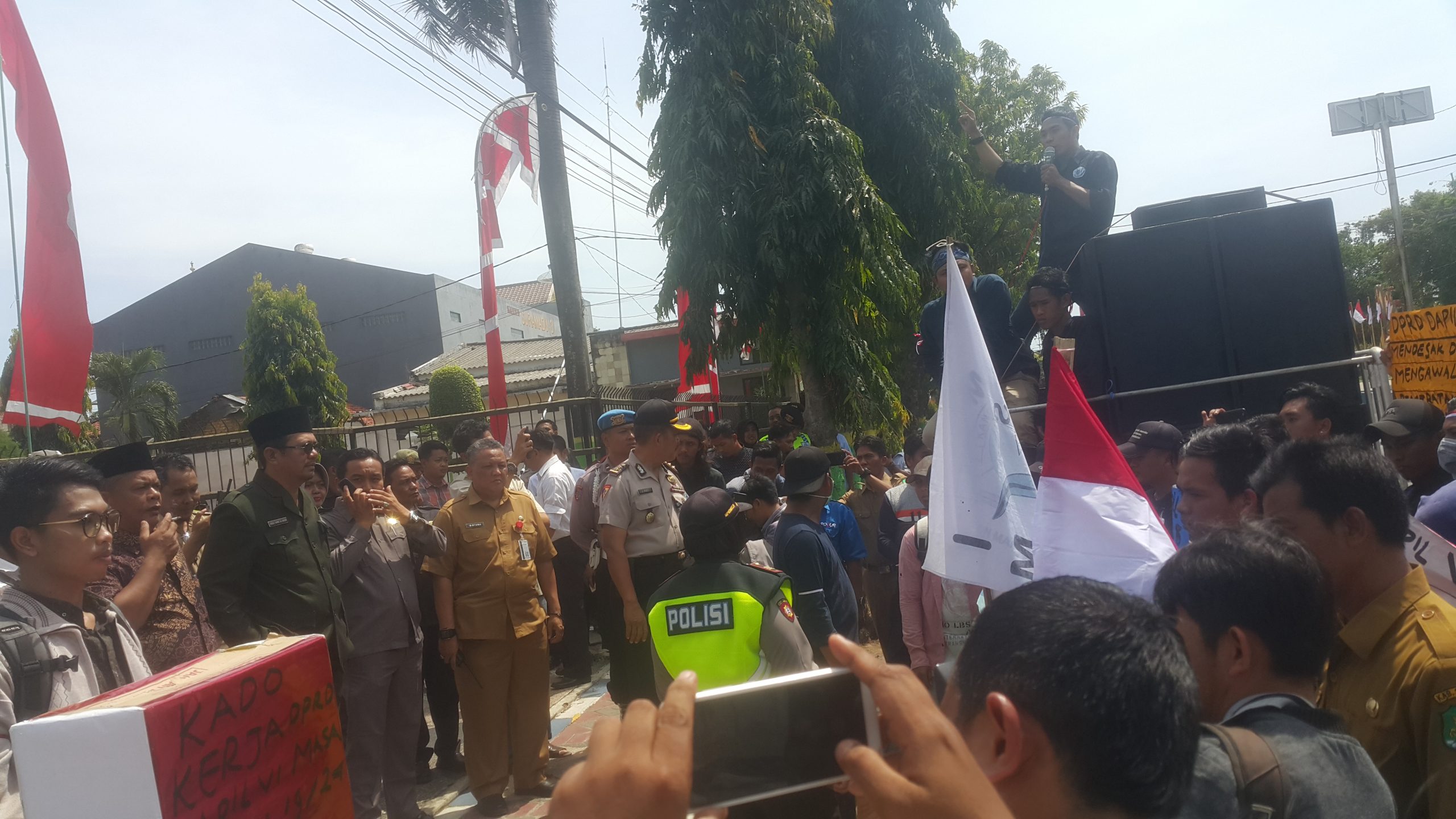 Koordinator Aksi Nurul Amal dalam orasinya menyampaikan permasalahan urgensi prolioritas pembangunan yang masih belum tuntas dan maksimal.