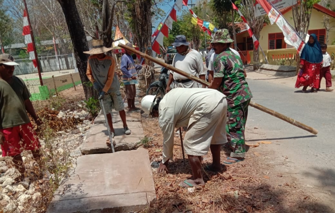 Seperti yang dilakukan saat ini, warga dengan penuh semangat bersama anggota Babinsa dan anggota TNI lainnya saling bantu-membantu mengerjakan kegiatan yang membutuhkan tenaga ekstra.Tidak perlu menunggu lama untuk mengumpulkan warga, cukup diumumkan melalui pengeras suara yang ada di Masjid Balai Desa warga langsung beramai-ramai datang ke lokasi.