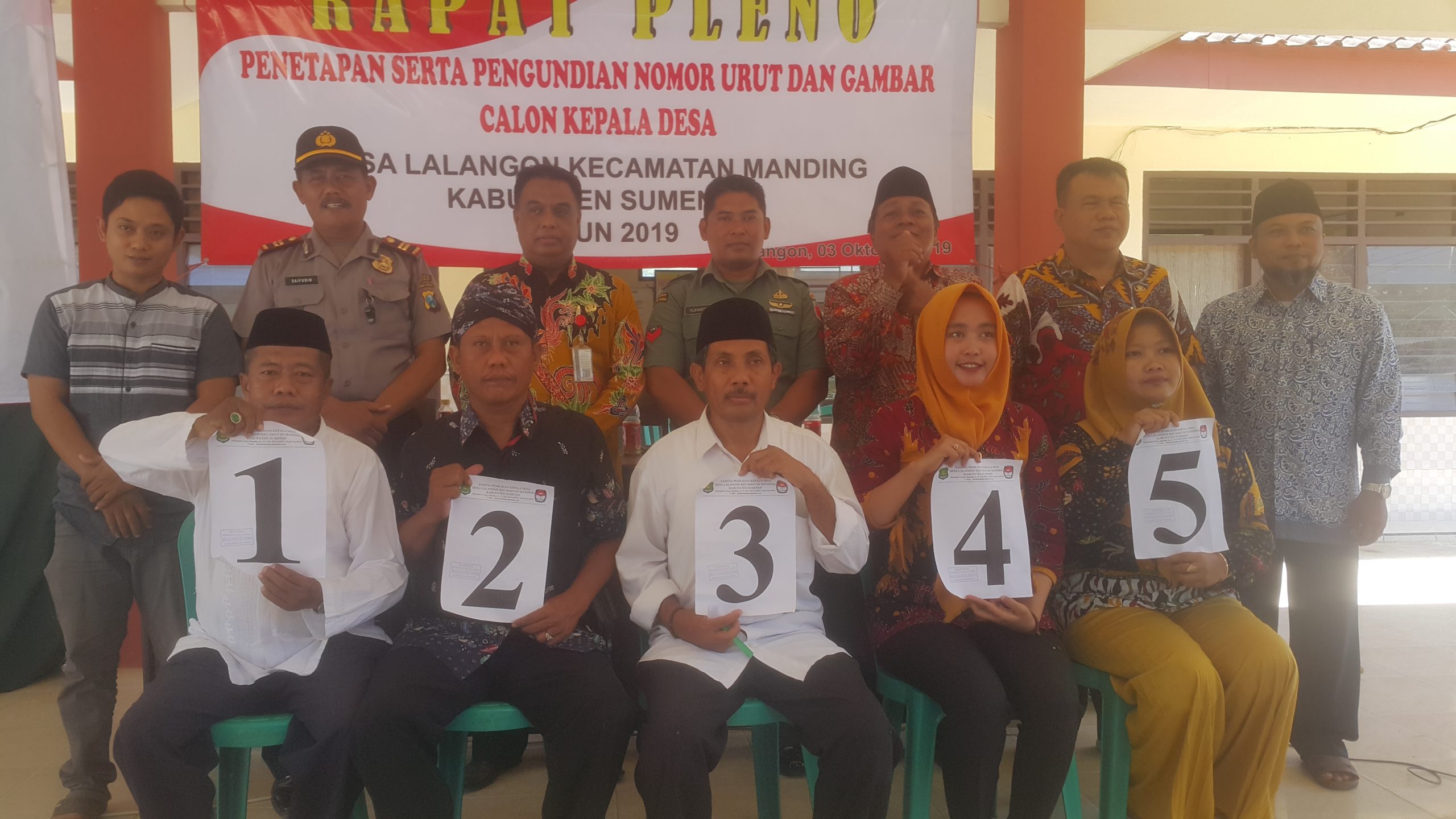 Panitia Pemilihan Kepala Desa (Pilkades) Desa Lalangon, Kecamatan Manding, Sumenep, Madura, Jawa Timur, melaksanakan rapat pleno penetapan serta pengundian nomor urut dan gambar calon kepala desa (cakades) di Balai Desa. Kamis, (3/10/2019).