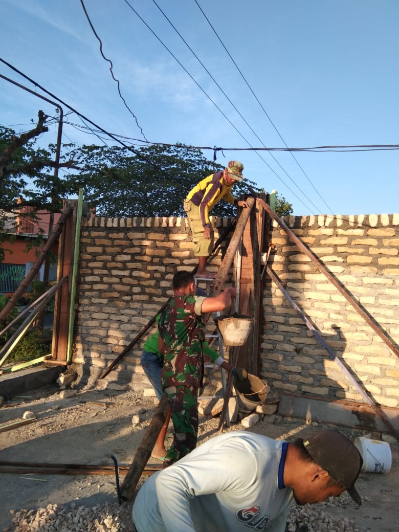SUMENEP, (TransMadura.com) – Babinsa Koramil 0827/07 Guluk guluk Serda Joko winarno melaksanakan Komunikasi Sosial dengan membantu warga binaannya membangun Rumah di Desa Bakeong, Kecamatan Guluk Guluk, Kabupaten Sumenep, Senin (14/10/2019).