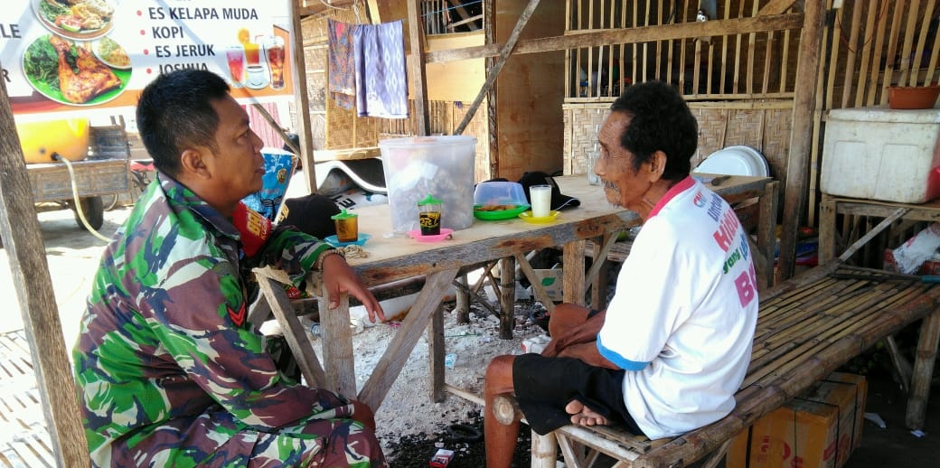 SUMENEP, (TransMadura.com) – Babinsa Koramil 0827/21 Ra’as Koptu Agung Sucahyono melaksanakan giat Komsos bersama warga binaan di Dusun Lambana Desa Poteran Kecamatan Ra’as Kabupaten Sumenep. Senin (25/11/2019).