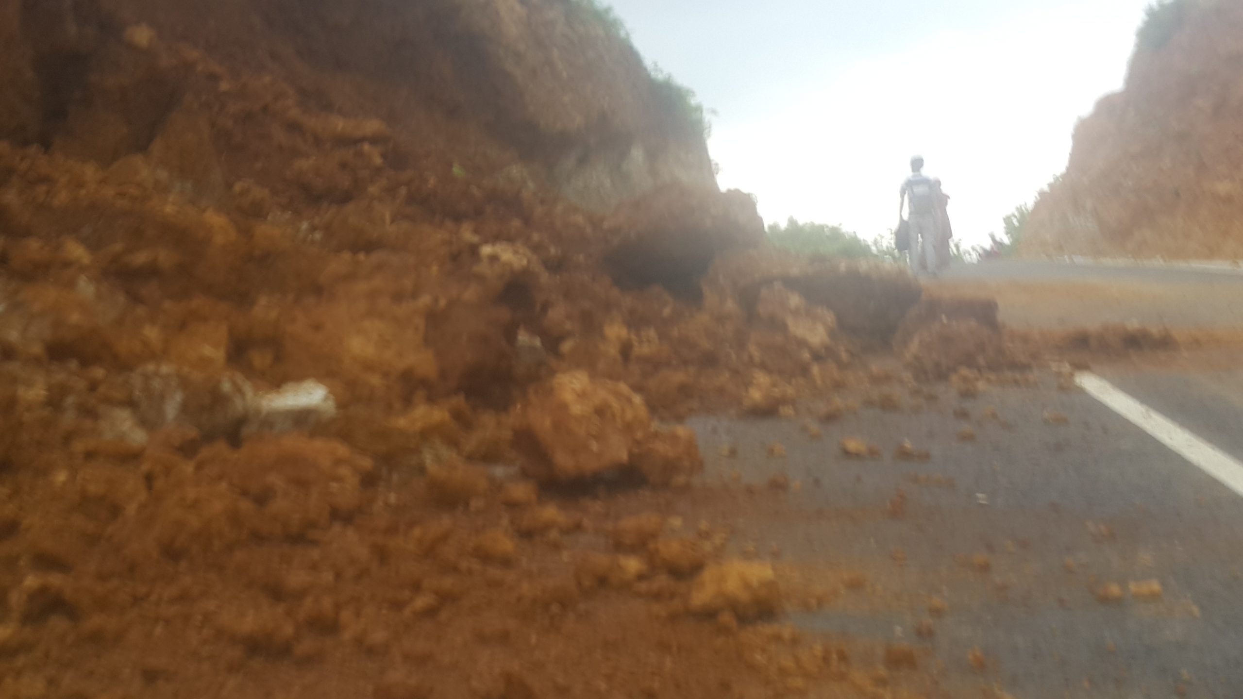 Lingkar Utara Tebing Longsor, Separuh badan Jalan Nyaris Tertutup