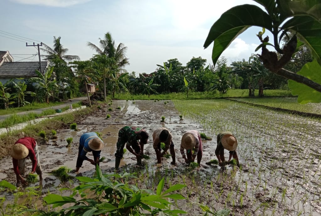 SUMENEP, (TransMadura.com) – Bintara Pembina Desa (Babinsa) Koramil 0827/15 Batuputih Serda Subani membantu penanaman padi di sawah milik Bapak Ruslan di Desa Gedang-Gedang Kecamatan Batuputih Kabupaten Sumenep. Kamis (23/1/2020).