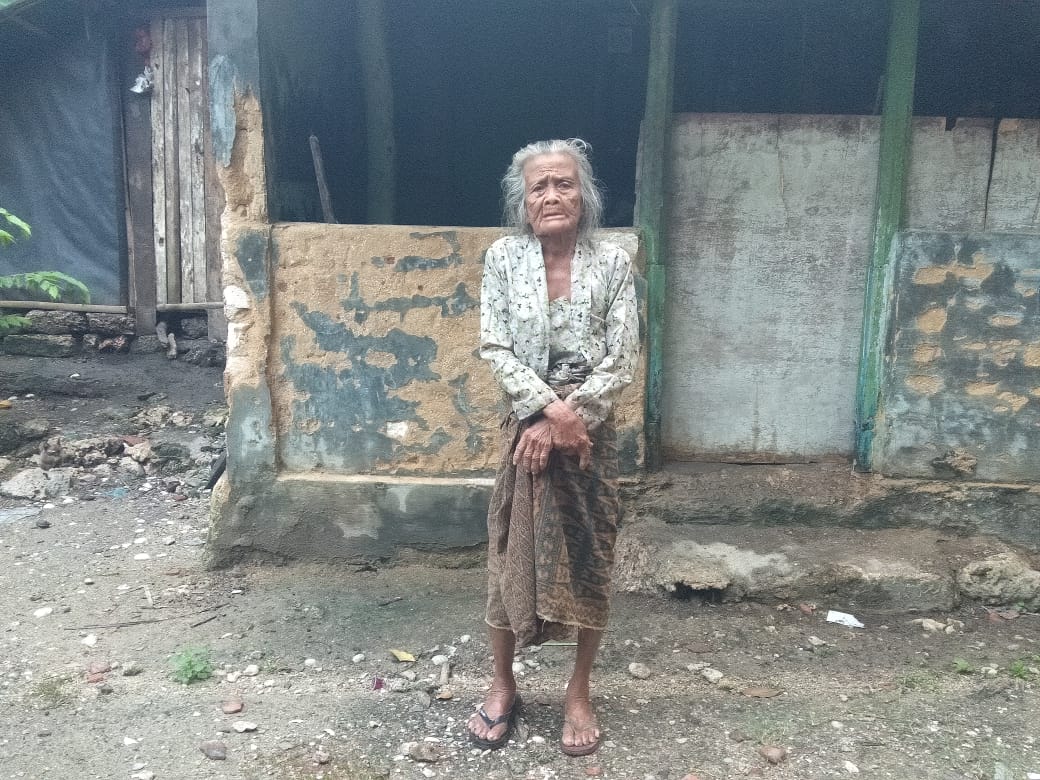 Maka dari itu, kebetulan, terang Oskar, di Kecamatan Saronggi, anggota suve ke lokasi dan ada nenek tua renta tinggal sendiri tidur di lantai.