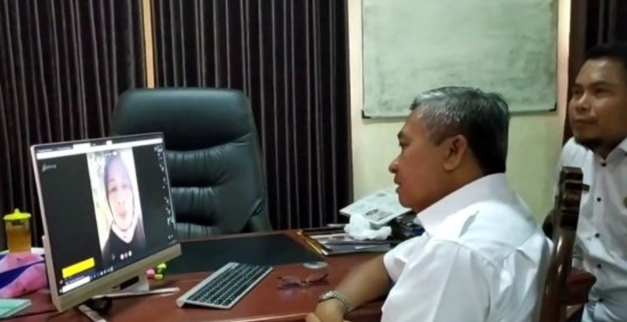 Kepala Dinas Pendidikan Kabupaten Sumenep, Carto, saat memantau lewat teleconference dengan sejumlah kepala sekolah, didampingi Kabid Pembinaan SMP Edy Suprayitno.