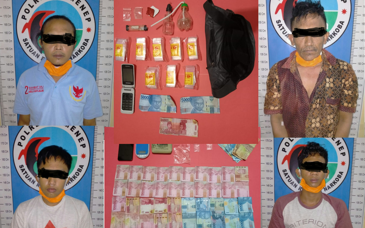 Pasalnya, empat pelaku itu dibekuk Satreskoba Polres Sumenep, Madura, Jawa Timur, Jum’at, (22/5/2020).
