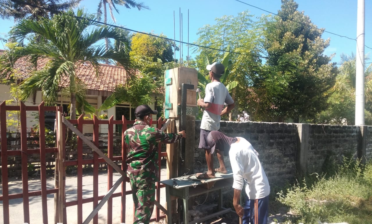 Inilah yang dilakukan oleh Babinsa Koramil 0827/19 Sapeken Sertu Fajaryanto dalam menjalin keakraban dan Melaksanakan Komonikasi sosial komsos dengan membatu Warga binaanya memperbaiki pintu gerbang di sekolahan bersama masarakat Desa Sabutan Kecamatan Sapeken Kabupaten Sumenep. Selasa (23-6-2020).