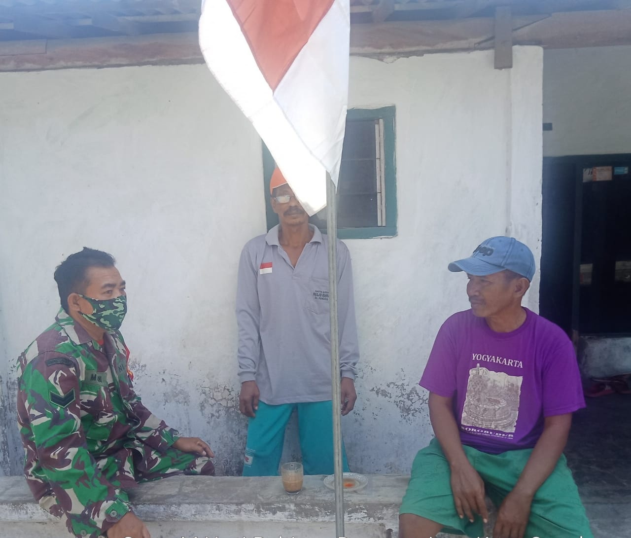 SUMENEP, (TransMadura.com) – Untuk menyambut dan memeriahkan Peringatan HUT Republik Indonesia ke 74 tahun 2020 Babinsa Koramil 0827/19 Sapeken Sertu M. Yani mendatangi Balai Desa dan rumah-rumah warga binaannya yang belum pasang Bendera untuk diajak segera untuk memasangnya, agar seluruh warga masyarakat Desa Sepanjang memasang Bendera Merah Putih dan umbul-umbul dalam rangka menyambut Peringatan Hari Ulang tahun Kemerdekaan Republik Indonesia tersebut di Desa Sepanjang Kecamatan Sapeken Kabupaten Sumenep. Senin 10/8/2020.
