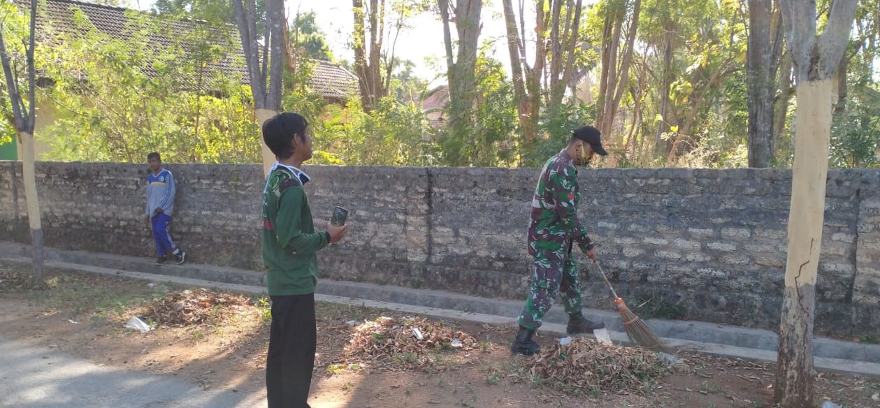 SUMENEP, (TransMadura.com) – Bintara Pembina Desa (Babinsa) Koramil 0827/23 Giligenting, Koptu Agus Hariyanto, besama warga binaan melaksanakan kegiatan karya bakti pembersihan ruas jalan di Desa Galis Kecamatan Giligenting, Kabupaten Sumenep, Madura, Jawa Timur, Sabtu (29/8/2020).
