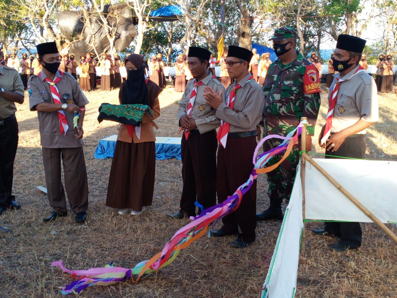 Babinsa Koramil 0827/20 Sapudi, Sertu Sumardi menghadiri upacara Pembukaan Pramuka Persami Tingkat Penggalang dan Penegak MTS Dan SMA Zainul Ridho. Kecamatan Nonggunong, Kabupaten Sumenep, Minggu (30/8/20).