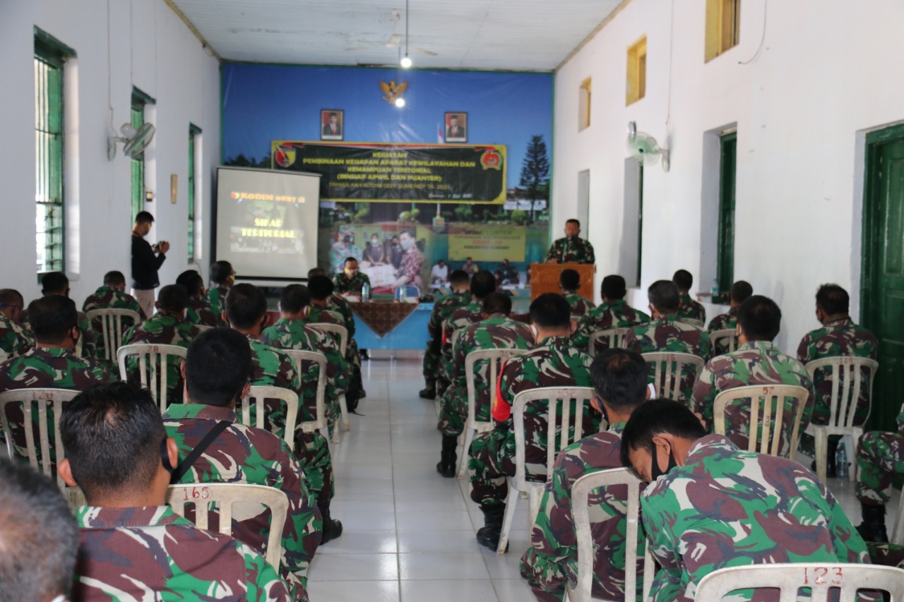 Hal tersebut dikatakan Katim Waslakgiat Kapten Inf Budi H (Pasi Bakti) saat kunjungannya dalam kegiatan Pembinaan Kesiapan Aparat Kewilayahan Dan Kemampuan Teritorial (Binsiap Apwil dan Puanter) TW III TA. 2020 di Aula Makodim 0827/Sumenep, Selasa, (01/09/20).