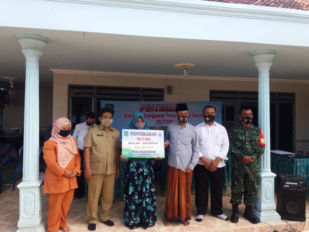 Penyaluran BLT-DD kepada masing-masing warga diawali secara langsung dilakukan Kepala Desa Kerta Barat Bapak Holis Samsul Arifin di kepada masyarakat penerima.