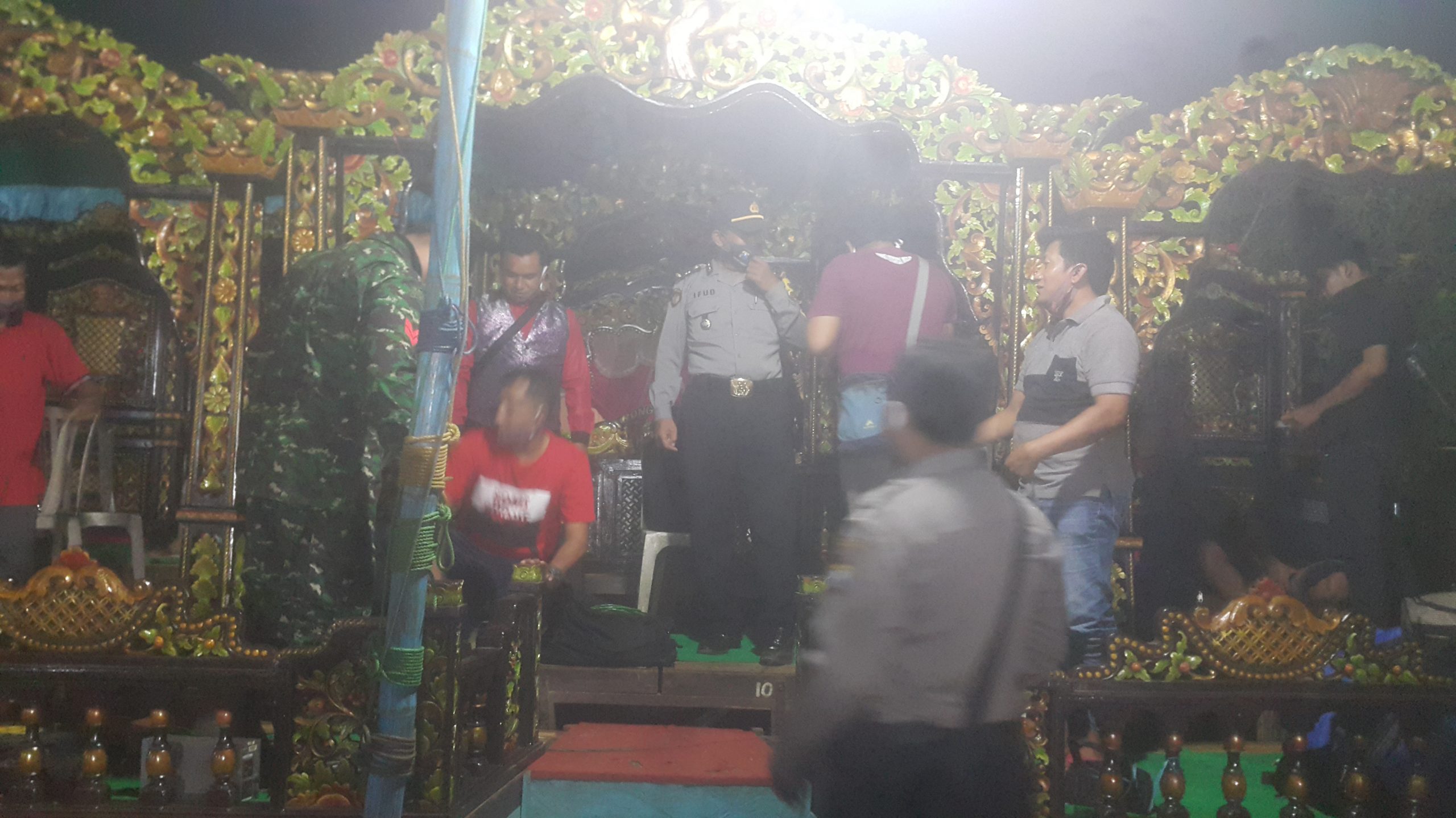 Menurut Kapolsek dalam penyampaiannya, hiburan musik electon di bubarkan, namun hajatannya tetap dilanjutkan, sehingga musisi dan artispun buyar kocar kacir.
