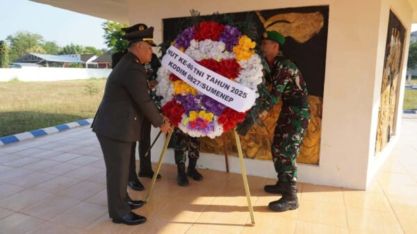 SUMENEP, (TransMadura.com)  – Kodim 0827/Sumenep menggelar ziarah daerah dalam rangka memperingati HUT ke-80 Tentara Nasional Indonesia (TNI) tahun 2025. Kegiatan berlangsung di Taman Makam Pahlawan (TMP) Jokotole, Desa Pamolokan, Kecamatan Kota, Kabupaten Sumenep, Jumat (3/10/2025).