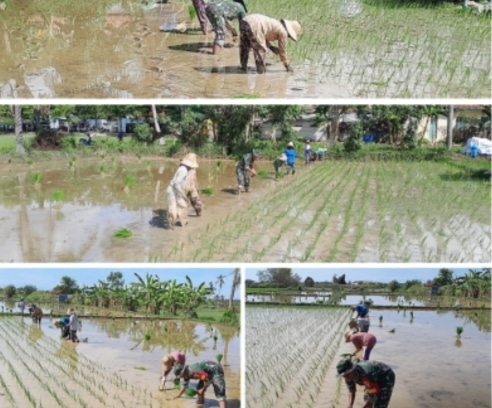 SUMENEP, (TransMadura.com)  – Hujan yang mulai turun di wilayah Kecamatan Pragaan, Kabupaten Sumenep menjadi sinyal semangat baru bagi para petani untuk kembali mengolah sawah mereka. Salah satunya tampak di Dusun Aeng Soka, Desa Pragaan Laok, di mana Babinsa Koramil 0827/09 Pragaan, Sertu Moh. Hasyim, turun langsung ke lahan sawah membantu petani binaannya melakukan tanam padi, Jumat (7/11/2025).