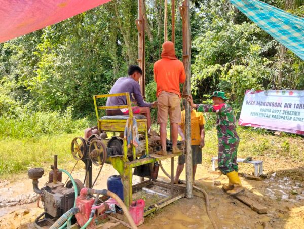 SUMENEP, (TransMadura.com) – Upaya penyediaan air bersih bagi warga Desa Montorna, Kecamatan Pasongsongan, Kabupaten Sumenep kembali bergerak maju. Senin (8/12/2025), program Desa Manunggal Air yang digagas Kodim 0827/Sumenep bersama Pemkab Sumenep memasuki tahap pengeboran lanjutan di Dusun Tanggulun.