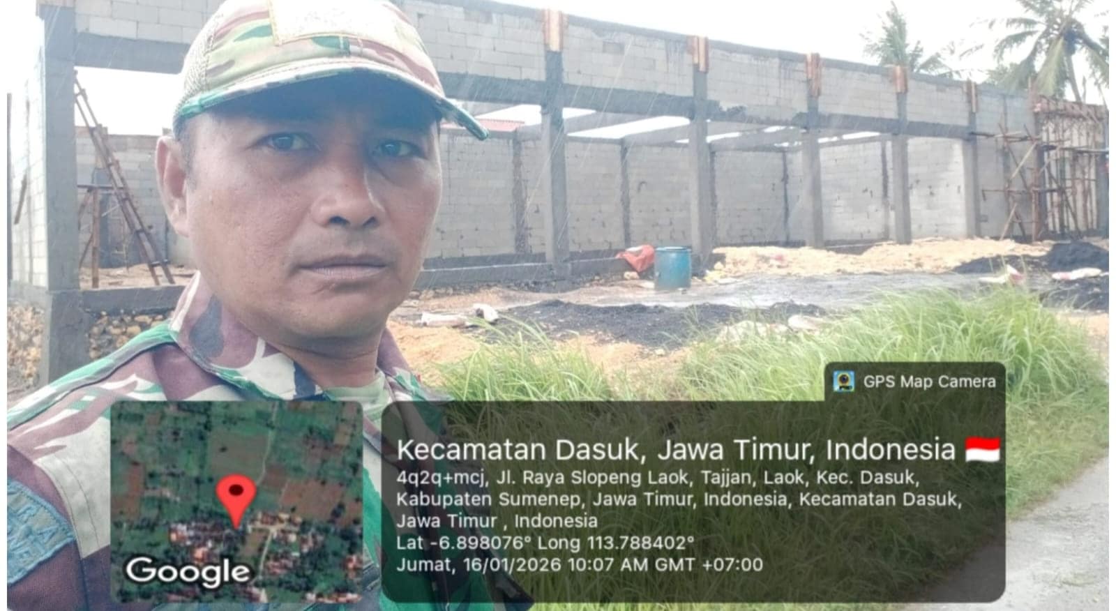 Pengawasan kegiatan pembangunan dilakukan oleh Babinsa Koramil 0827/12 Dasuk, Serka M. Umar, sebagai bentuk pendampingan terhadap program penguatan ekonomi desa.