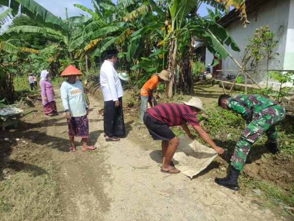 SUMENEP, (TransMadura.com)  – Babinsa Koramil 0827/13 Rubaru, Serda Ismail, bersama warga melaksanakan kegiatan gotong royong membersihkan jalan desa sekaligus membangun saluran irigasi di Dusun Karang, Desa Mandala, Kecamatan Rubaru, Kabupaten Sumenep, Sabtu (24/1/2026).