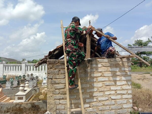 SUMENEP, (TransMadura.com) – Kepedulian TNI terhadap lingkungan dan masyarakat kembali ditunjukkan Babinsa Koramil 0827/19 Sapeken. Sertu Yoyok Handoko turun langsung melaksanakan kerja bakti memperbaiki bangunan tempat keranda jenazah di pemakaman umum Desa Tanjung Kiaok, Kecamatan Sapeken, Kabupaten Sumenep, Minggu (1/2/2026).