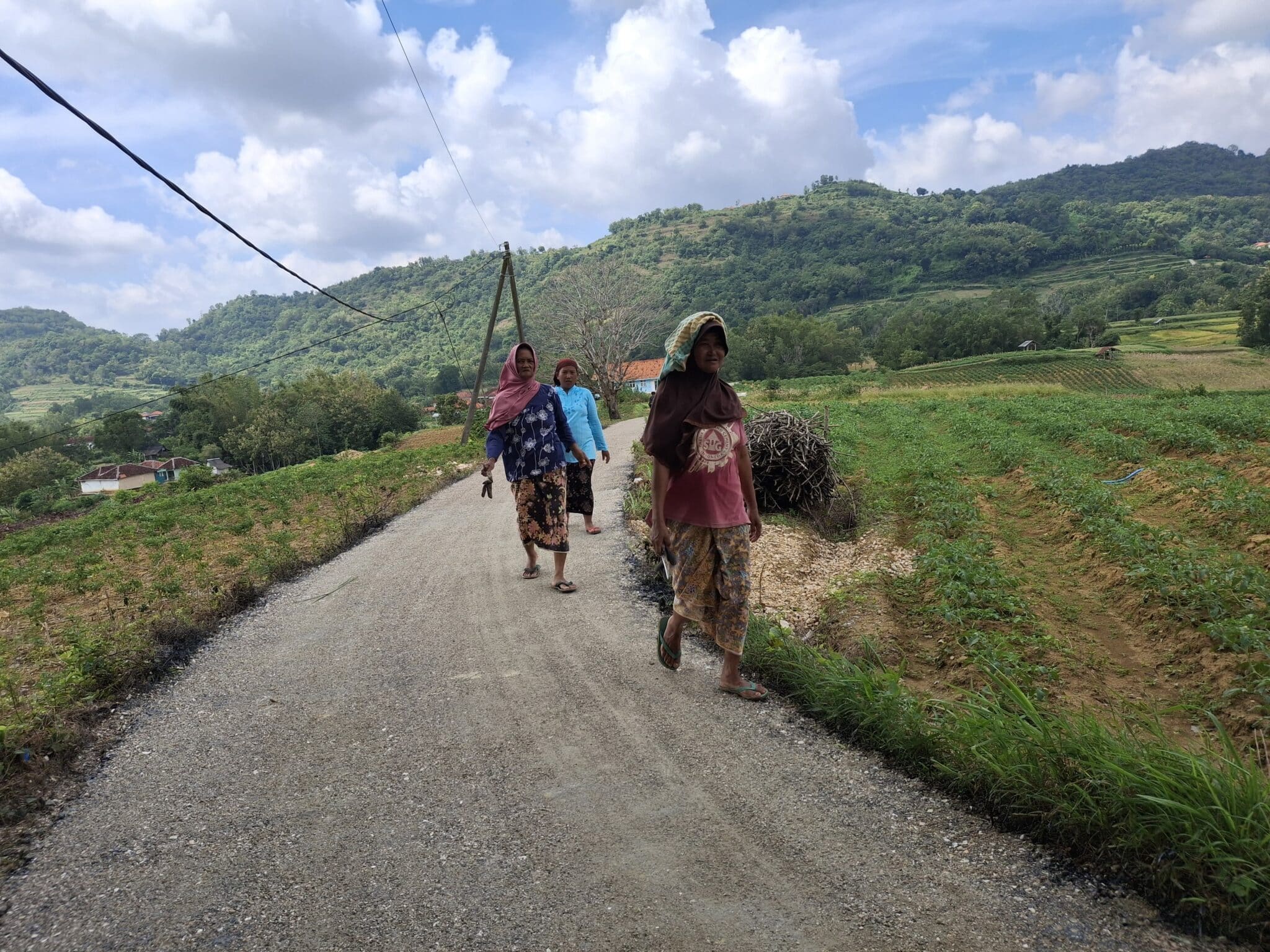 Nuriyah mengaku, sebelum jalan diperbaiki, warga harus ekstra hati-hati saat melintas, terutama ketika membawa hasil panen bawang dari ladang.