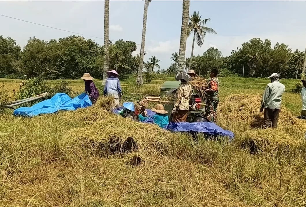 Kehadiran Babinsa di tengah sawah tidak hanya membantu mempercepat proses panen, tetapi juga memberikan semangat bagi para petani yang tengah bekerja sejak pagi hari.