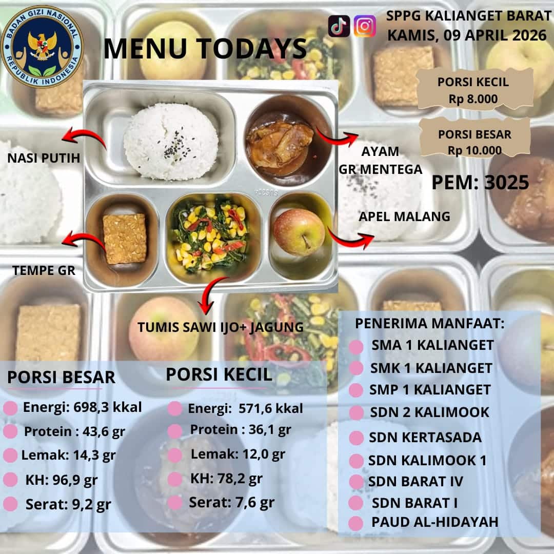 SPPG Kalianget Barat 1 menjadi penyumbang terbesar dengan 3.168 porsi untuk sembilan sekolah, disusul Kalianget Barat dua sebanyak 1.675 porsi dan Palasa 2.179 porsi ke 38 sekolah.